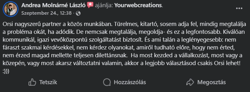 A honlapkészítés számomra nem csupán technikai munka, hanem alkotás: minden projekt új felfedezés, ahol a vállalkozás értékei válnak láthatóvá.